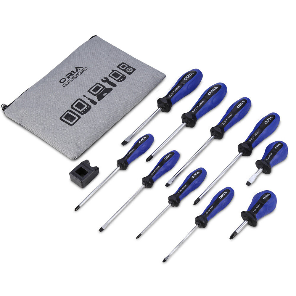 ORIA Screw Driver Set Magnetic Screwdriver Kit 5 Phillips Screwdrivers, 5 Flat Head Screwdrivers with Magnetizer, Ergonomic Non-skid Handle for Repairing Home Improvement, Toys, Computer, Blue