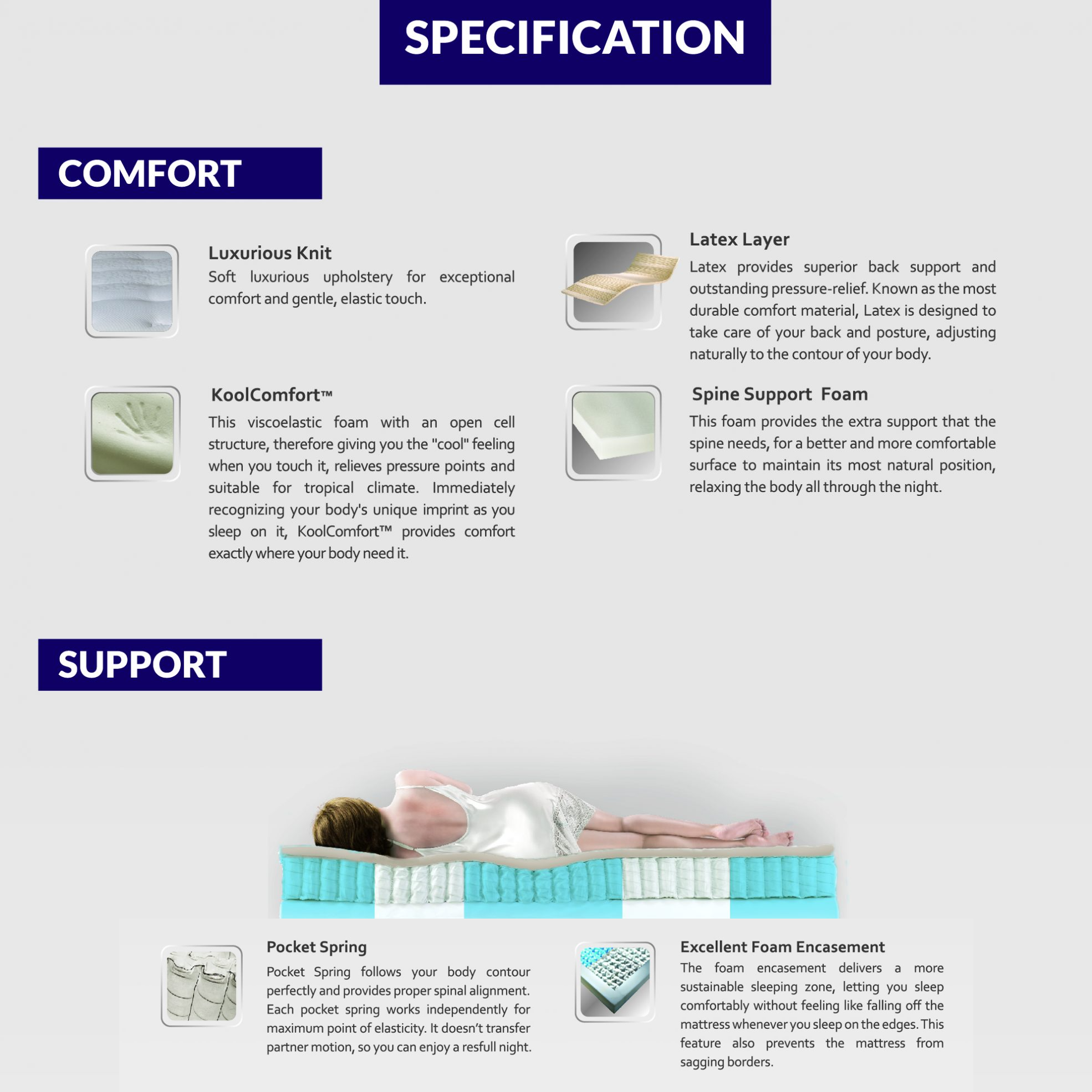 *CLEARANCE* SLEEP SMART Mattress (13 inch), Serta Perfect Spine Collection, Latex Top 5-Zone Pocket Spring, Available Sizes (King, Queen, Super Single, Single)