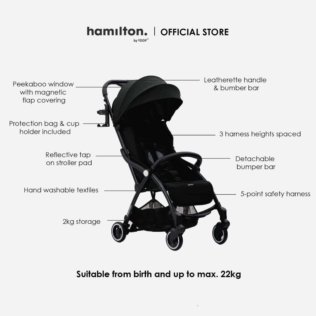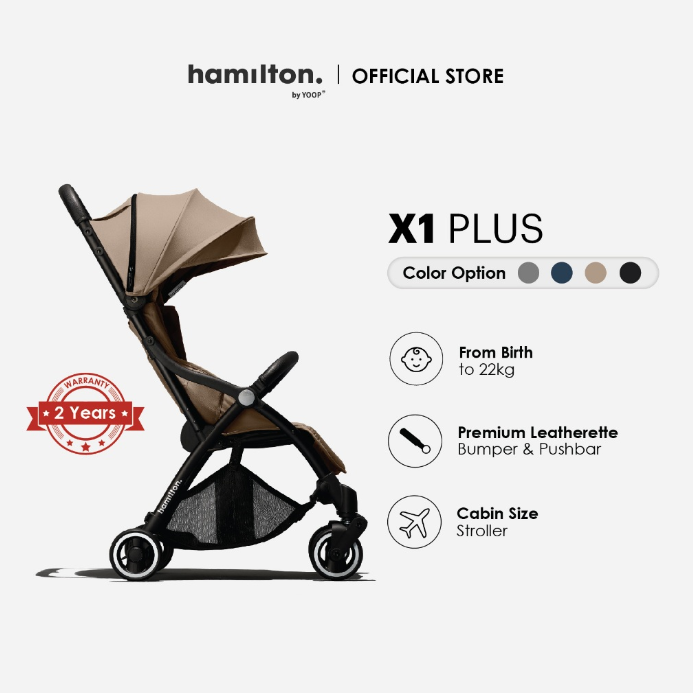 The Hamilton stroller, X1 Plus is made up of top-quality anodised aluminium frame and premium fabric, thanks to its spacious and comfortable seat, the stroller will carry your baby safely from birth to 4 years old, approx. 22kg.