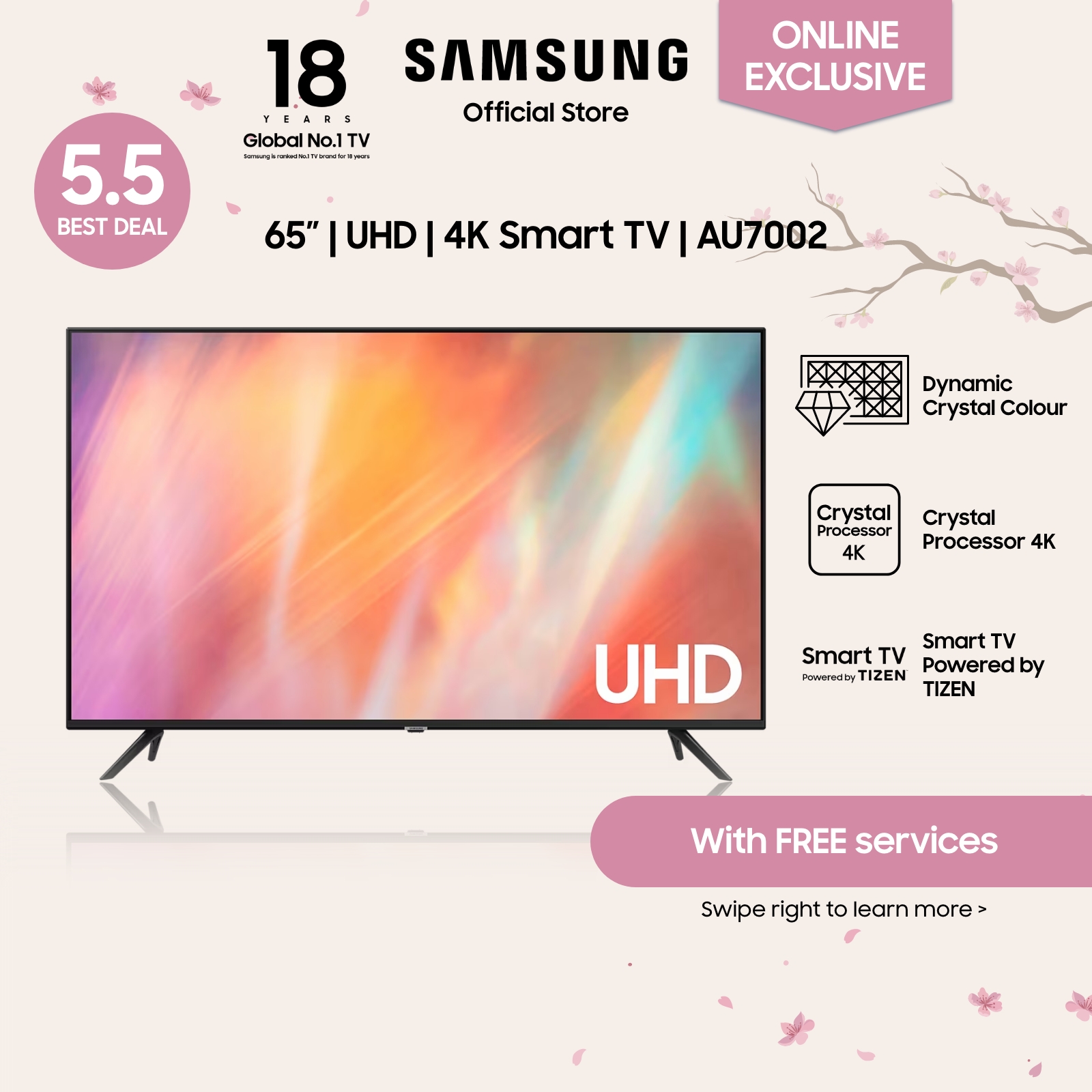 Samsung AU7002 UHD 4K Smart TV, 4 Ticks [Online Exclusive]