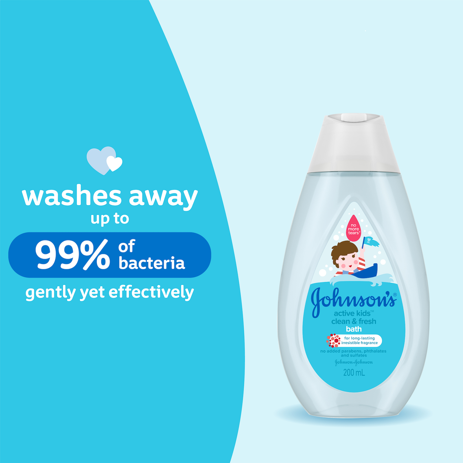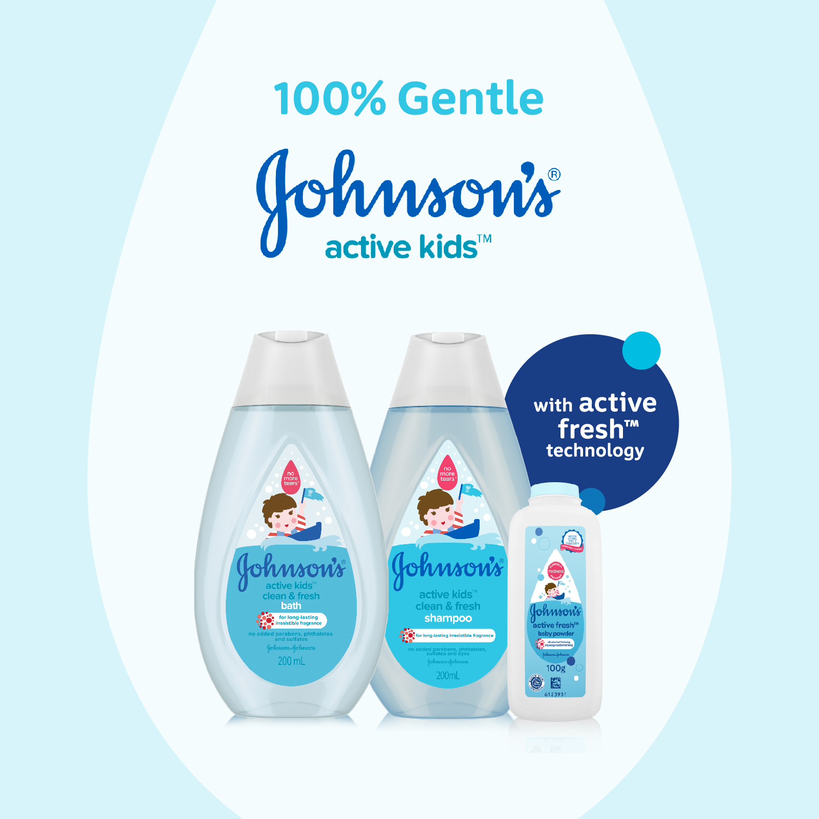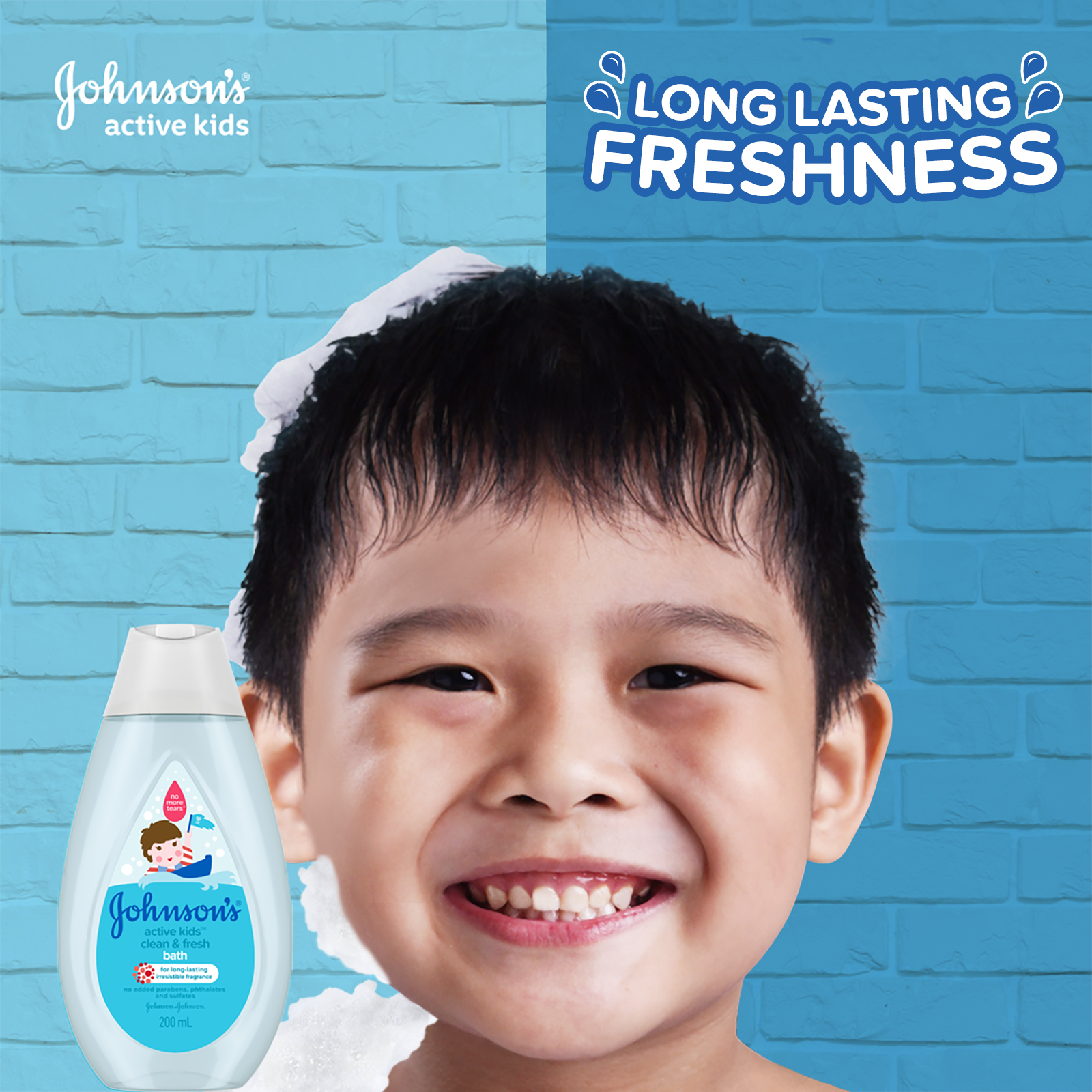 Johnson's® Active Kids™ Clean & Fresh bath for long-lasting irresistible fragrance. As baby starts to walk & play, their needs change. Our Active Kids™ range is specially designed to be gentle versus adult products, but effective for toddler needs.