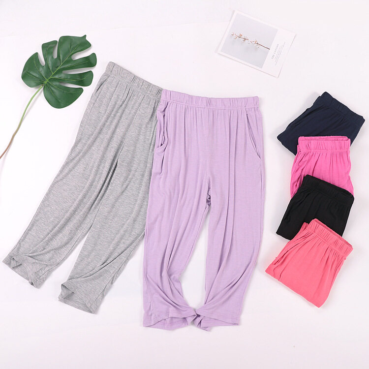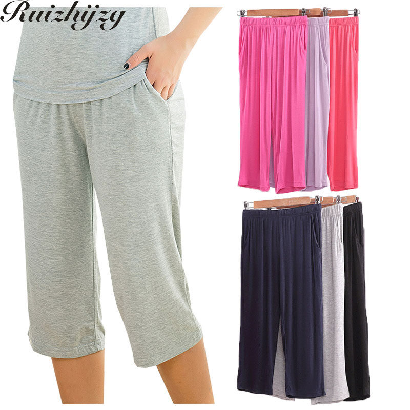 Ruizhijzg Ready stock M-3XL Pajamas seven points Shorts with Pockets Women's Summer Thin Home Wear Casual Modal Cotton Ladies Short Pants Plus Size