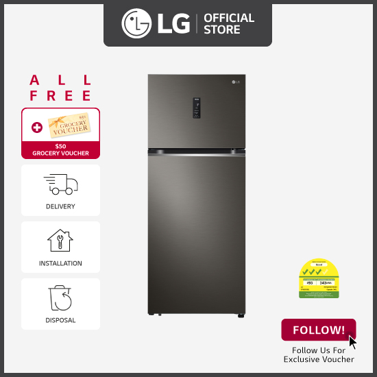 [Bulky] LG GT-B3952BL Top Freezer Refrigerator with Inverter Compressor, 395L, Black Steel + Free Delivery + Free Installation + Free Disposal