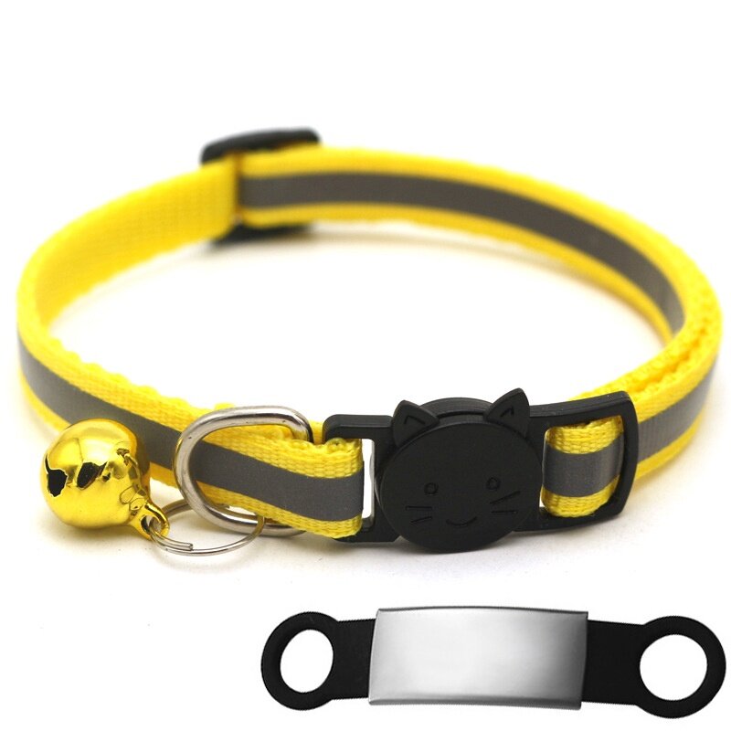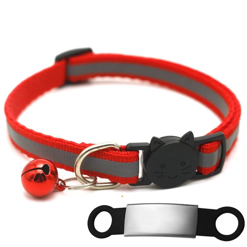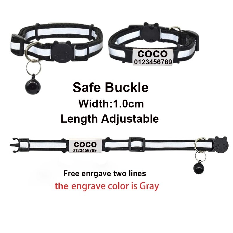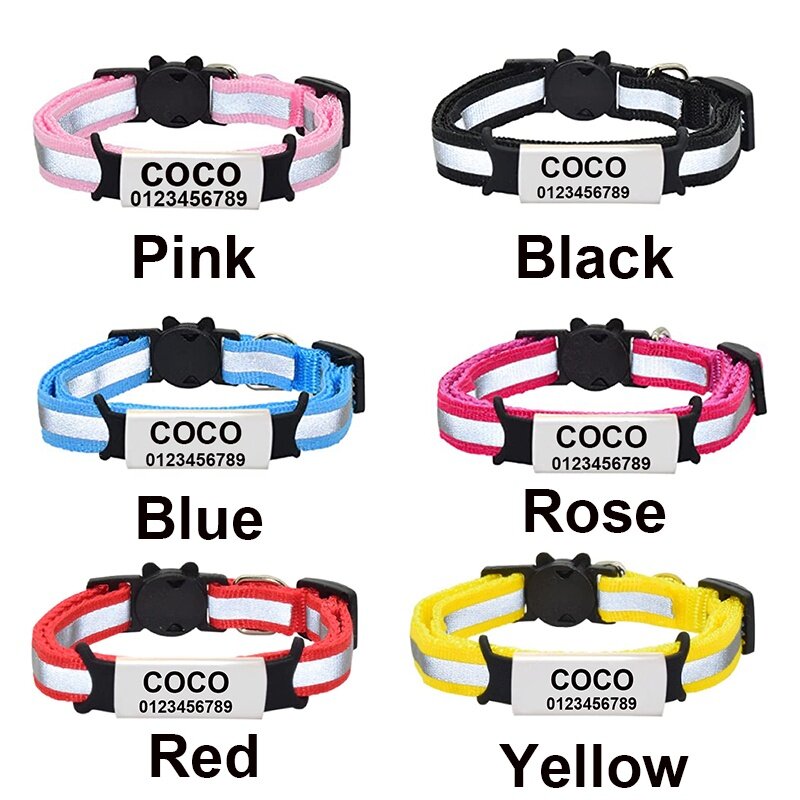 Free Custom ID Name Tag Cat Collar Bell Necklace Safety Reflective Nylon Kitten Cat Collar Personalized Engraved Safte Buckle