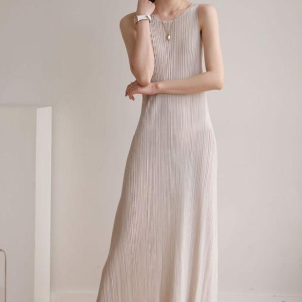 Miyake Pleated Summer Fashion Casual High-Quality Suspender Skirt Slim A-Line Long Skirt Sleeveless