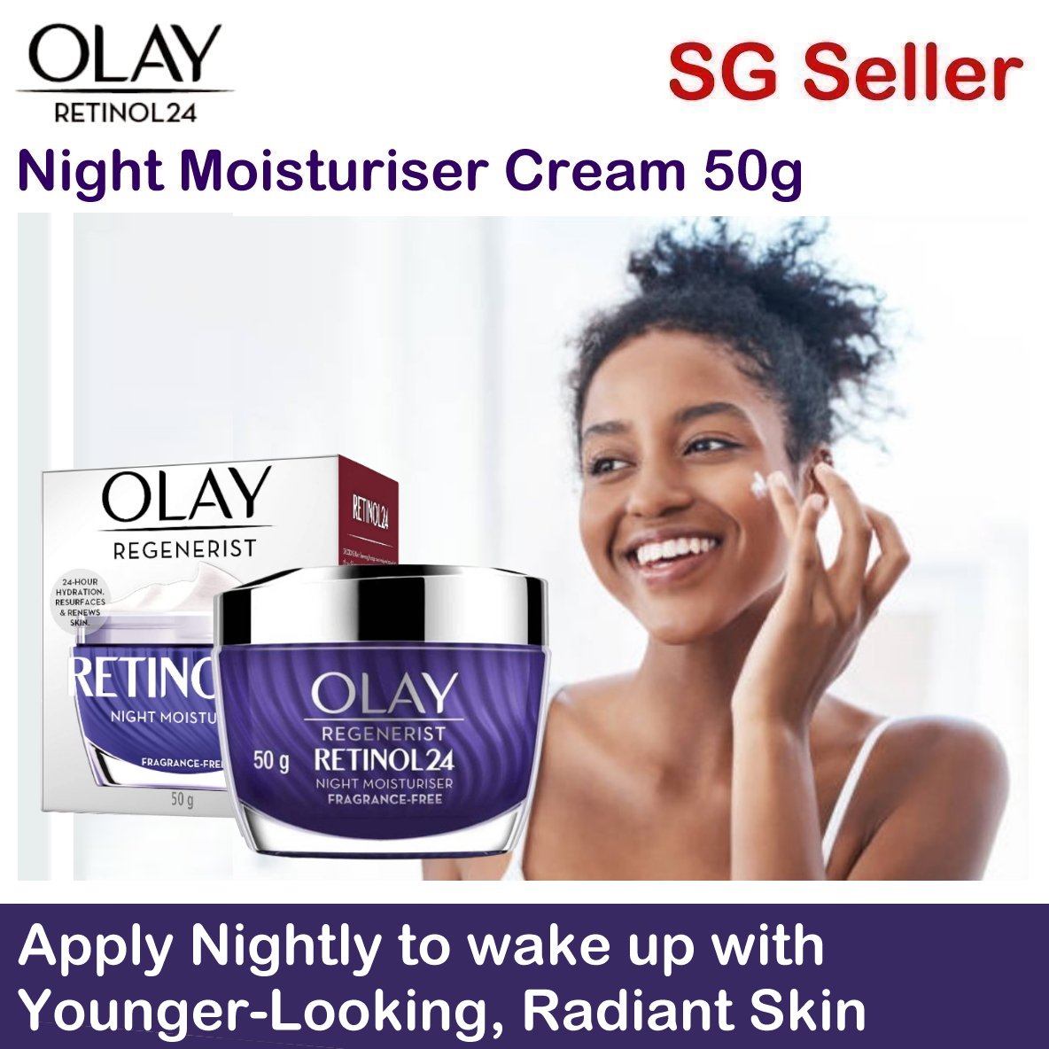 OLAY Regenerist Retinol 24 Night Moisturiser Cream 50g – Options : 1 Can & Value Bundle of 2 Cans – Hydrates Skin for 24 hours – Smoothness , Brightness , Firmer Skin – Reduce Fine lines & wrinkles ,