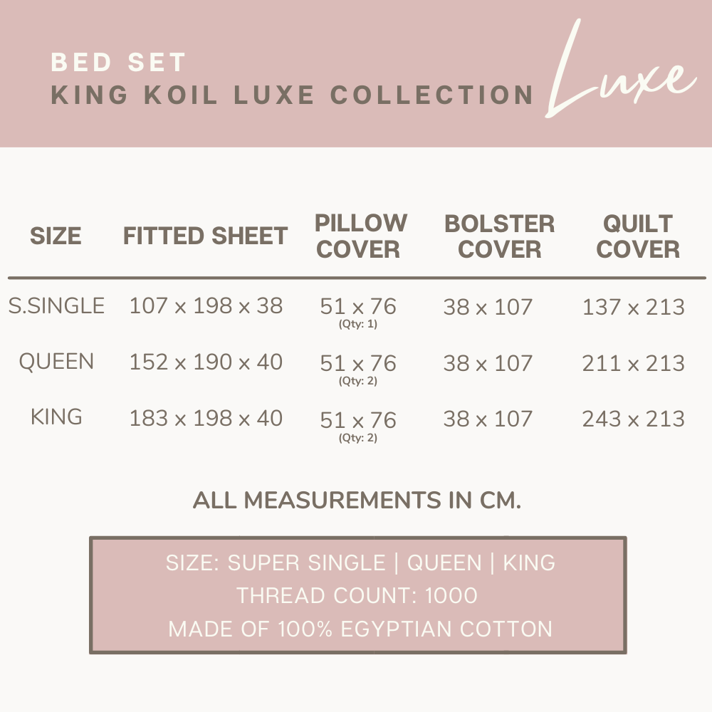 King Koil Luxe Collection 1000TC 100% Egyptian Cotton Bed Set | Available in Super Single, Queen & King