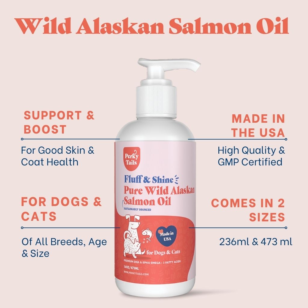 For Healthy Skin And Coat For Cats And Dogs - Perkytails Wild Alaskan Salmon Oil For Dogs Is All Natural And Contains Essential Omega 3 Fatty Acids To Help Our Pets Look and Feel Good From Within