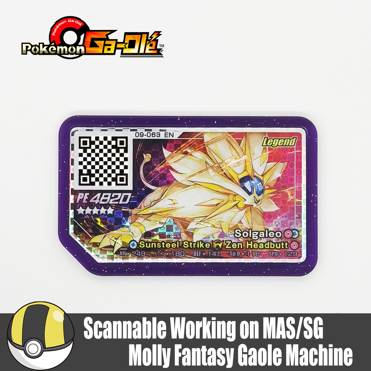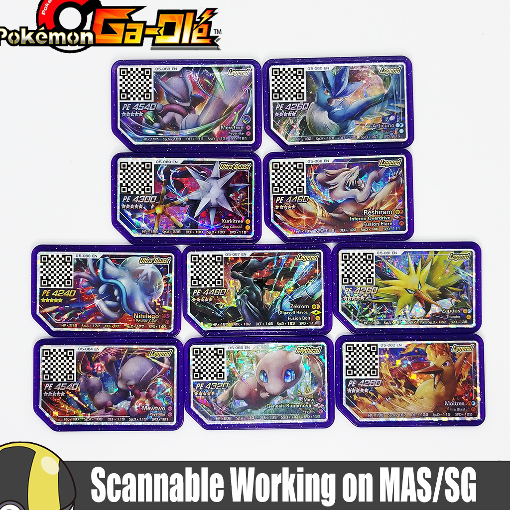 Pokemon Gaole Modified High quality shiny & purple disk. High quality English Malaysia Legend 1 2 3 4 Scannable Malaysia High quality shiny & purple disk. Note: Not from machine, but 99% similarity that is all scannable in Singapore & Malaysia. Every disk is sleeved. Best quality in !!! Disk not listed is at another listing due to space constraint. When you use a Support Pokemon Disk, a Pokemon might support you in a battle! Place your Support Pokemon Disk face down on the Multi-Scanner on the top left!