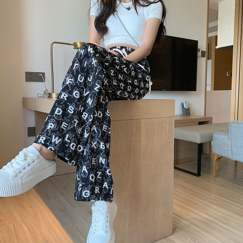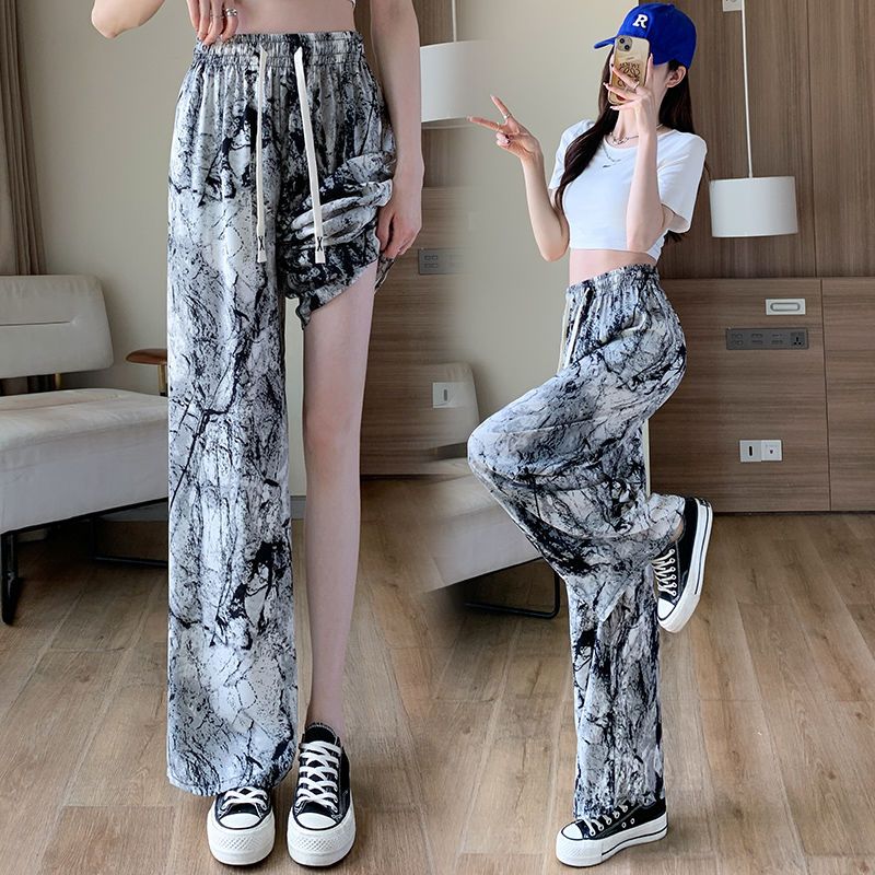 Women's Ice Silk Chiffon Wide-leg Pants Women's Thin Section Loose Thin Large Size Small People Leisure Straight Sports Pants