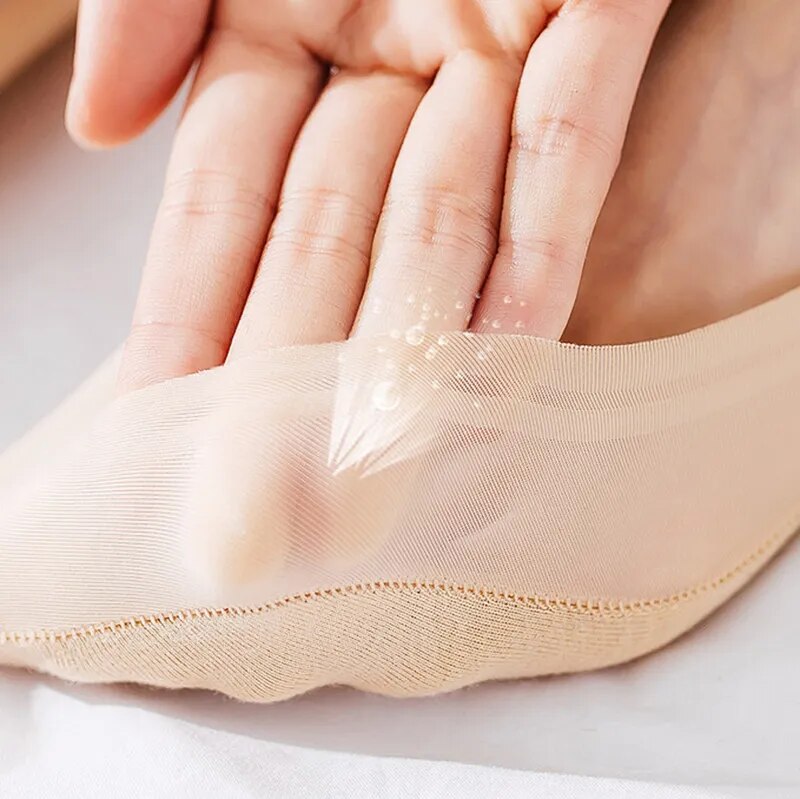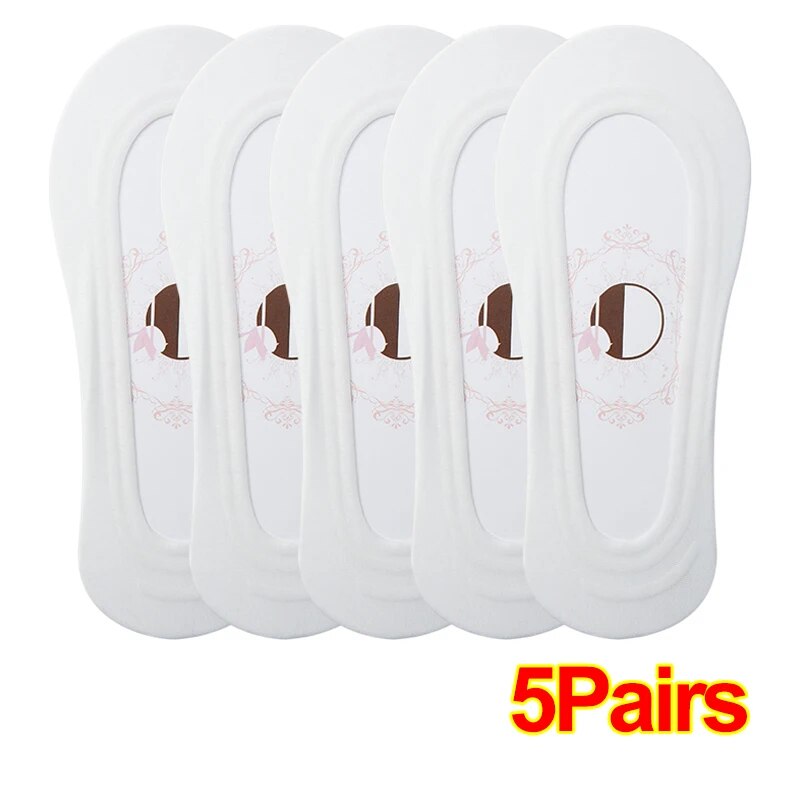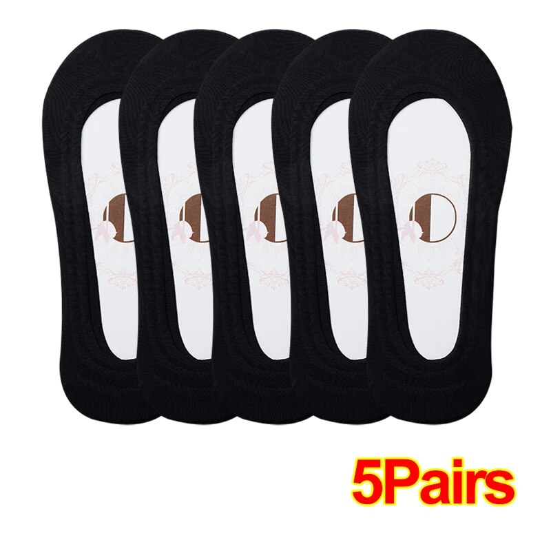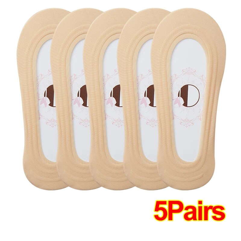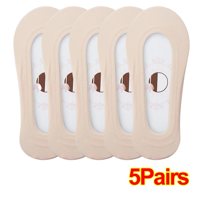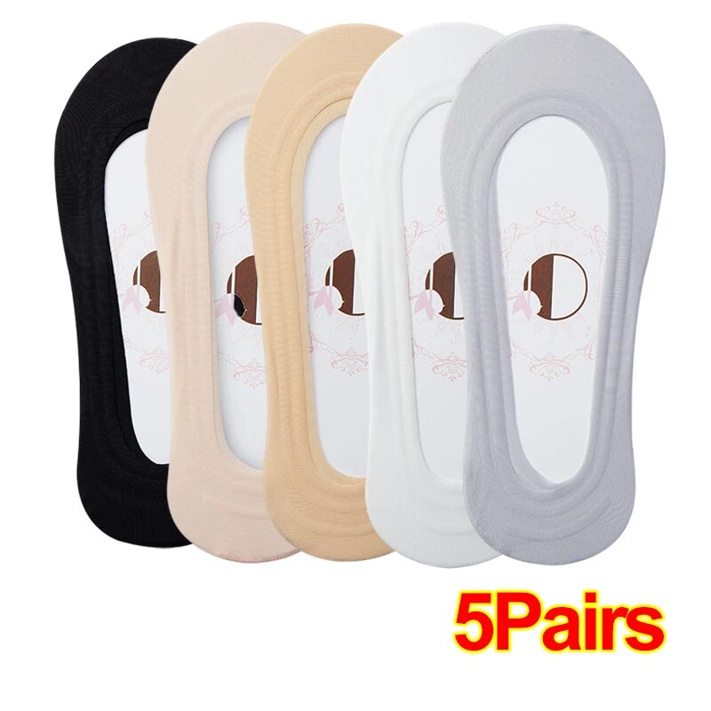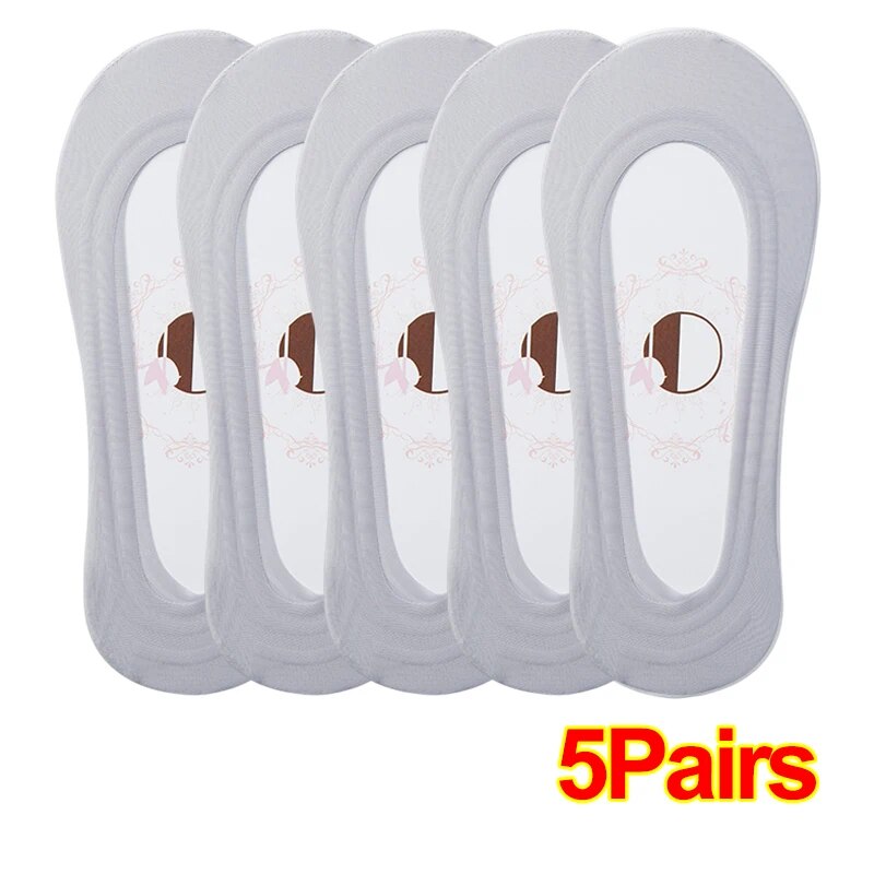 1-5Pairs Women Summer Thin Comfortable Breathable Boat Socks Non-slip Ice Silk Invisible Socks Seamless Shallow Socks Ladies Casual Short Socks