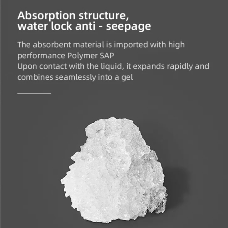 ✅ Third layer is a mix of super absorbent polymer and fluff pulp, forming the absorbent core that absorbs the urine and turns it into gel instantly