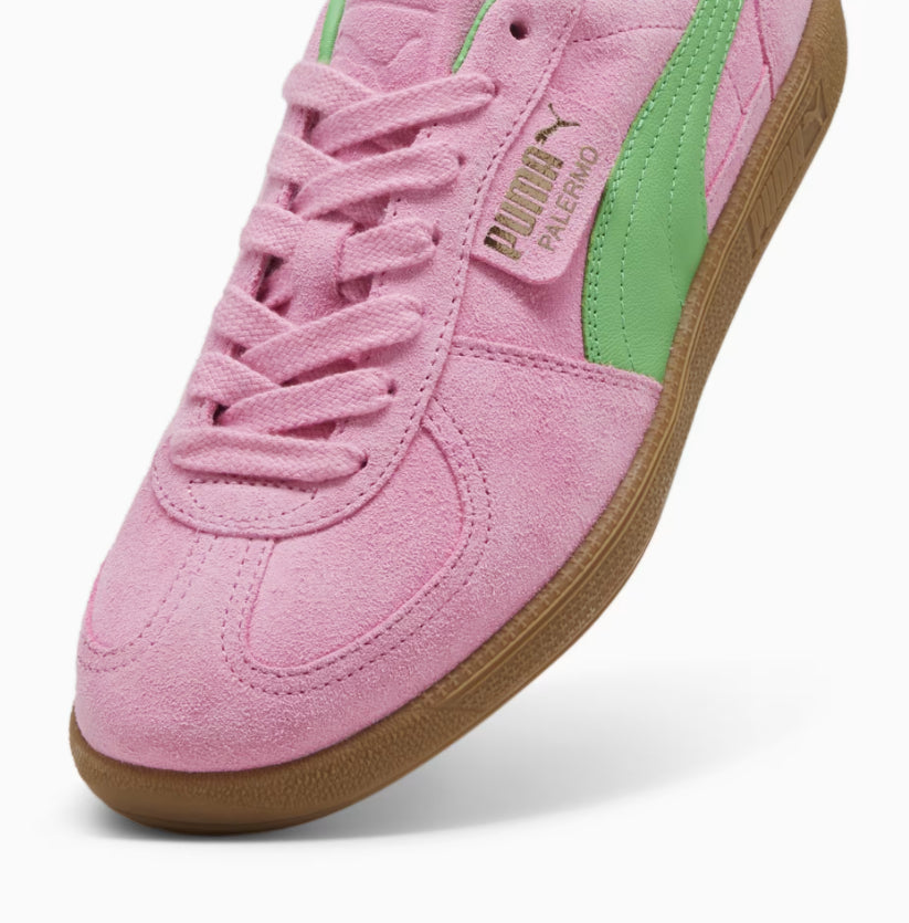 The Palermo, a terrace legend from the Puma archives, returns. The silhouette made its debut in the early 1980s, and it quickly became a favorite staple among terrace crowds in British football stadiums. The Palermo, like the original, has its signature tag at the upper, a T-toe construction, colorblocking details, and, of course, the classic gum sole.