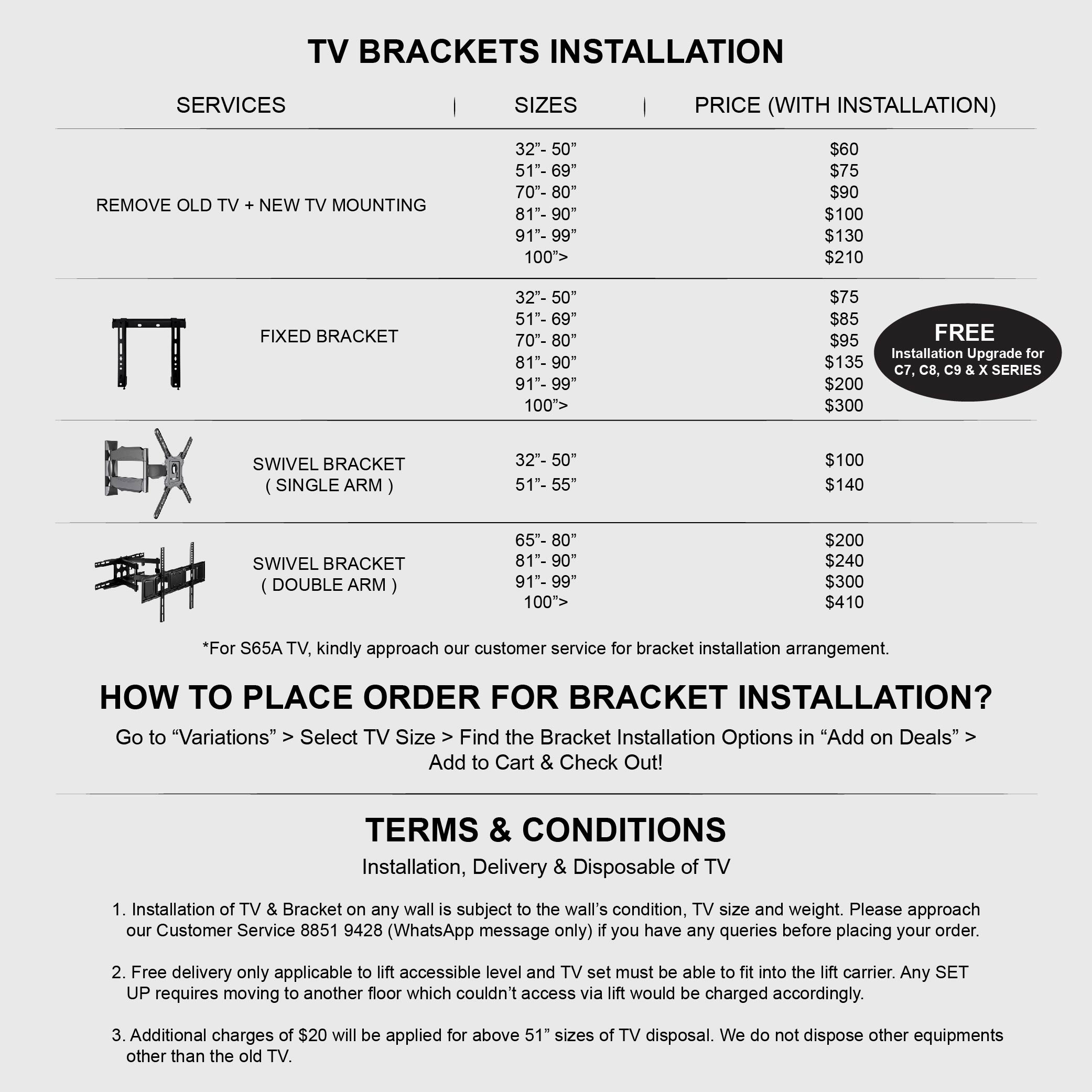 Free Bracket and Installation (either option) with every confirmed order of QLED C7 and Mini LED C8, C9 X955 series