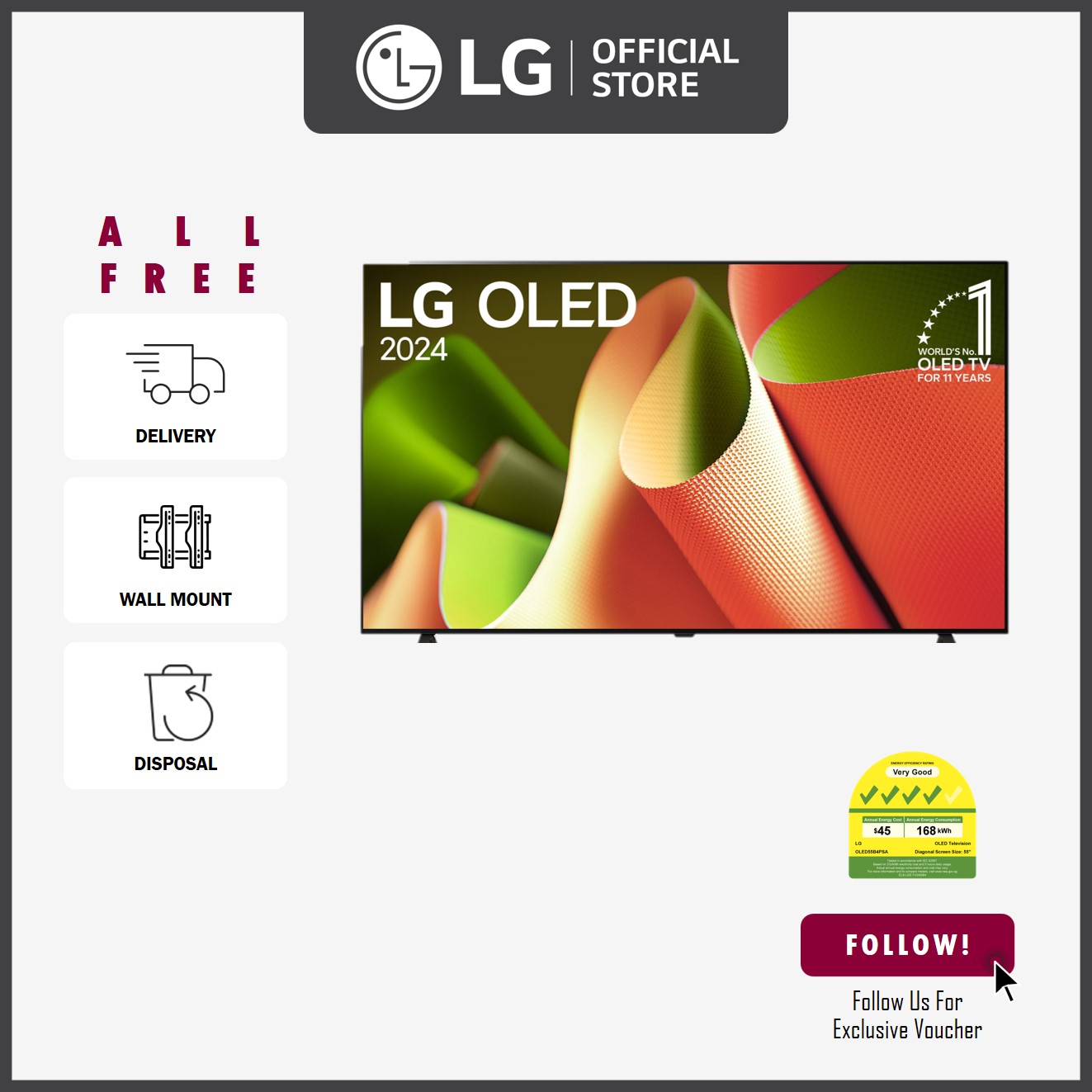 [NEW] LG OLED55B4PSA 55'' 4K OLED B4 Smart TV + Free Delivery + Free Wall-Mount Installation Worth up to $200