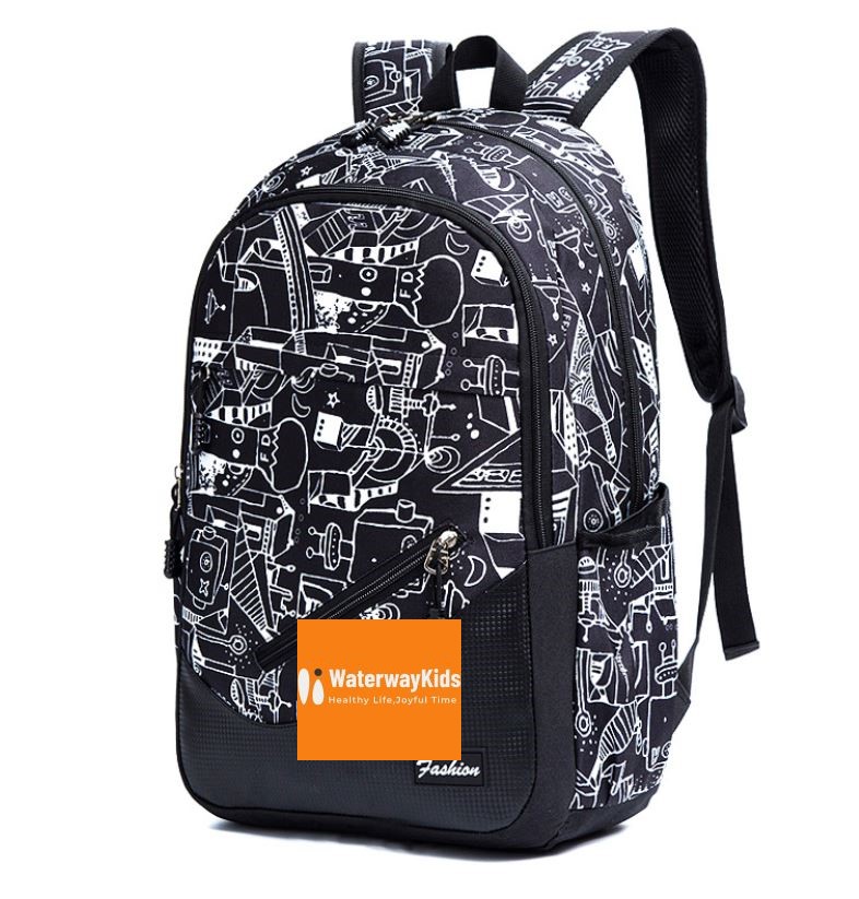 Unisex Waterproof Primary 3 to Secondary school ergonomic backpack canvas shoulder bag for boys and girls, 小学中学学生减负保护脊椎书包