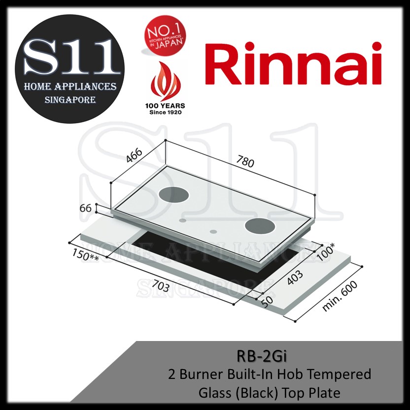 Rinnai 2 burner Inner Flame Glass Hob RB2GI - 1 YEAR WARRANTY - FREE INSTALLATION