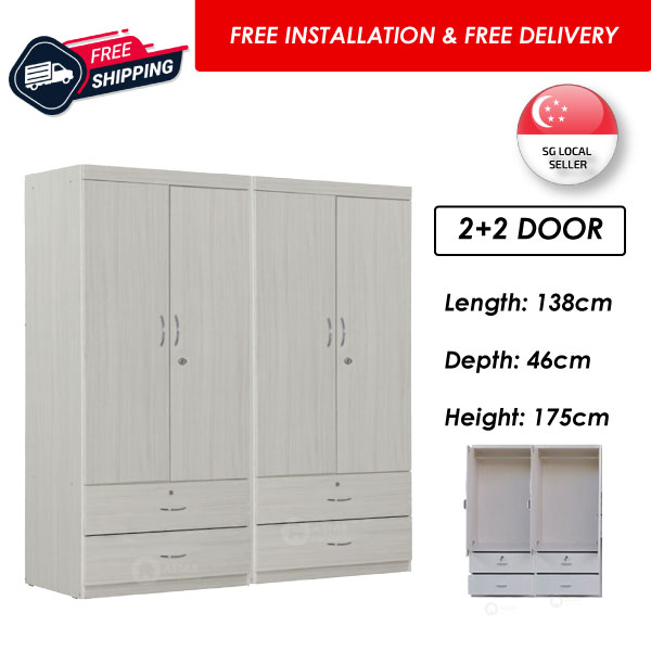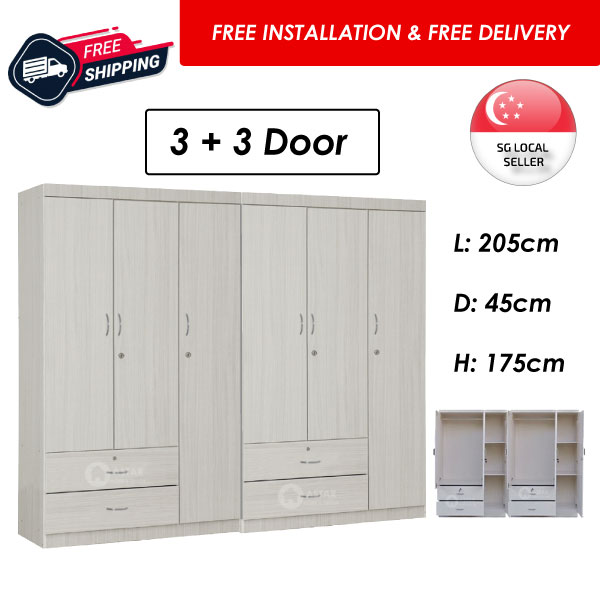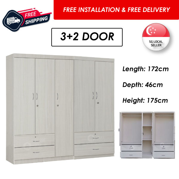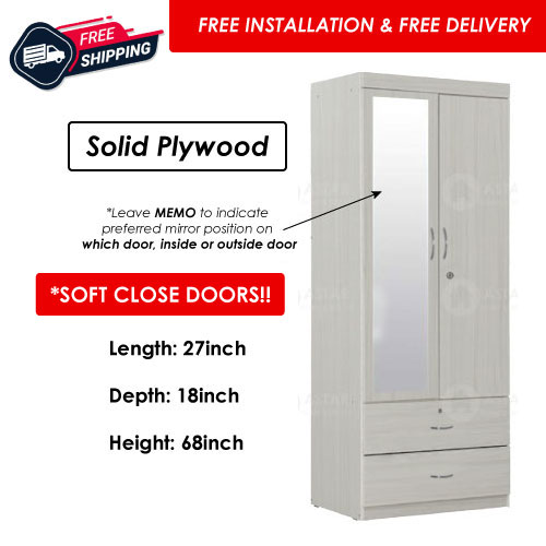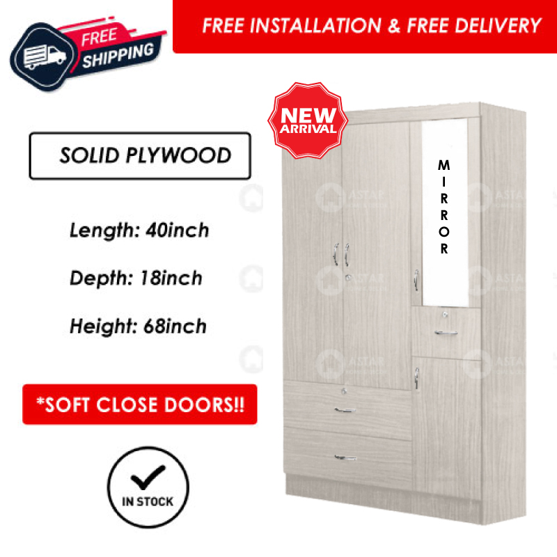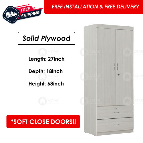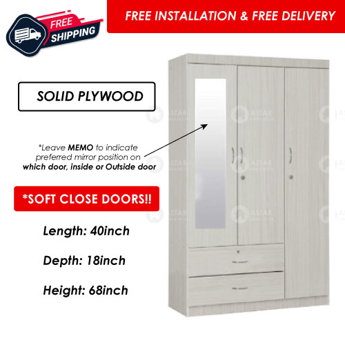 Furniture Amart 2 / 3 Door Wardrobe Solid Plywood Cabinet with Lock Drawers standalone Soft close Door (Limewash)