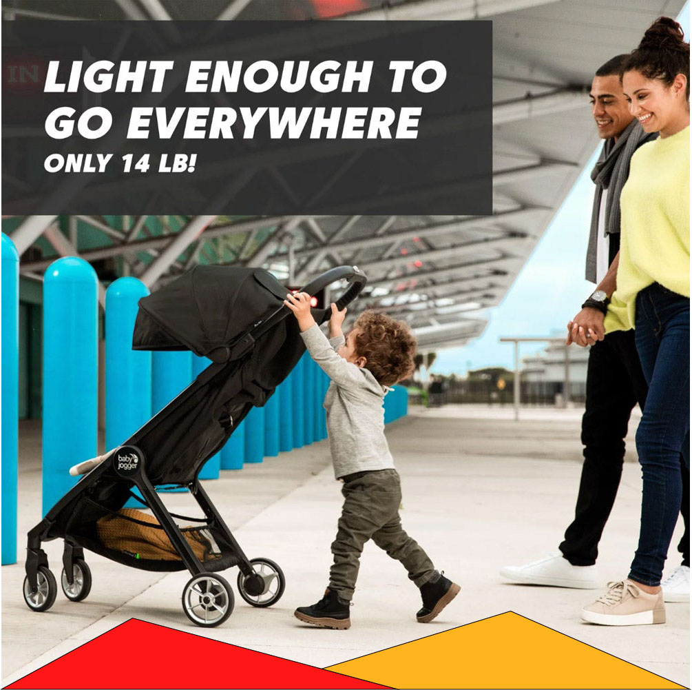 Baby Jogger® City Tour™ 2folds up small for big adventures—85% smaller than when it's unfolded. The City Tour™ 2 is the ultimate stroller for travel, with an ultra-compact, one-step fold, a weight of only 14 lb, and an included carry bag. But despite its lightness, the City Tour™ 2 doesn't skimp on features.