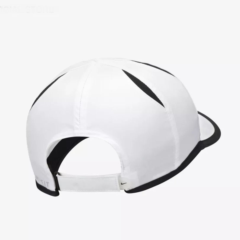 The black underbill on the Nike Sportswear AeroBill Featherlight Cap helps reduce glare so you can see more and squint less. Sweat-wicking fabric and mesh inserts help keep you feeling cool and comfortable throughout the day. Back closure adjusts for a customised fit. The ventilated design offer comfort and shade from the sun starting at the first mile to the last.