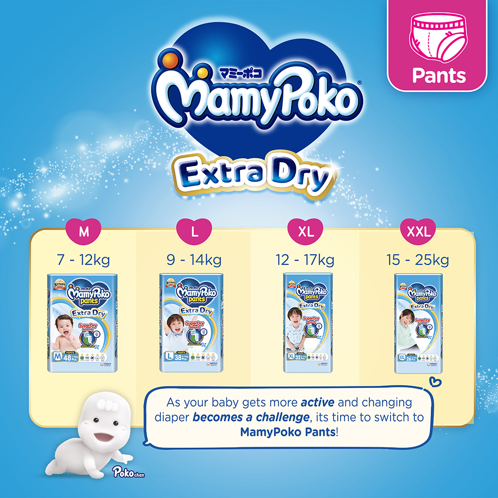 MamyPoko Extra Dry Pants Baby Diapers XL 32pcs x 4 Packs (12-17kg) [Carton]