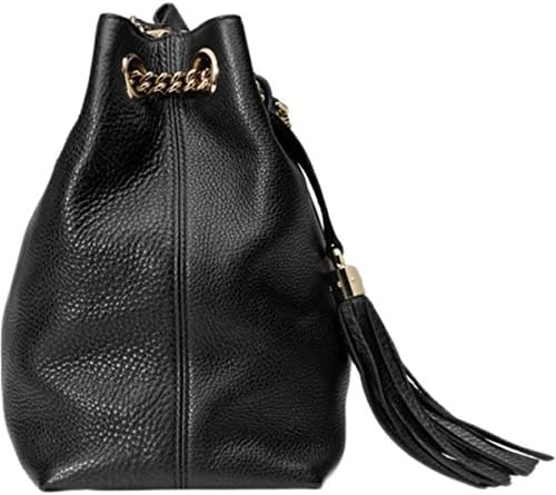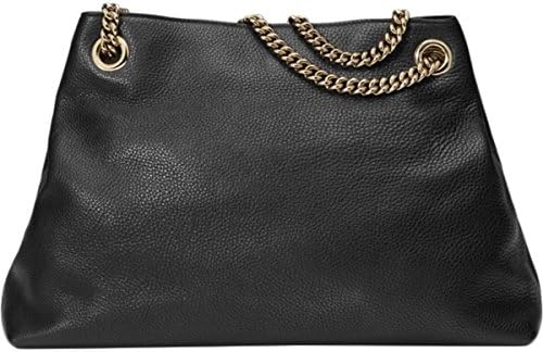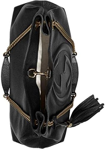 This Gucci black leather bag features the interlocking GG logo. It is large enough to carry all of your essentials in style. The shoulder straps are made of gold chain, but come with leather shoulder padding for comfort. This designer handbag goes great with everyday looks and is super classy. Model: 536196 Black Leather Embossed interlocking G Detachable leather tassel Double chain shoulder straps with leather shoulder pad Inside hook closure Light fine gold-toned hardware Two Interior Pockets Strap Drop: 8.75" Measurements: 16" x 5.5" x 10.6" (LWH) #3,198,683 in Clothing, Shoes & Jewelry ( ) #7,176 in #18,758 in