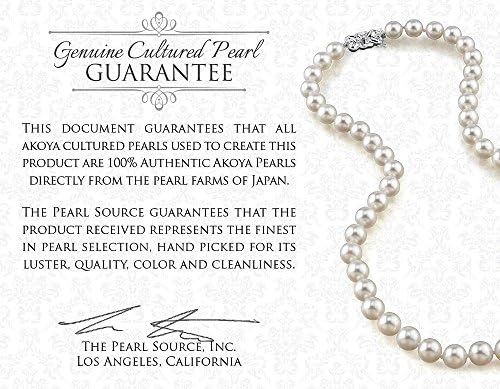 The Pearl Source 14K Gold Hanadama Quality Round Genuine White Japanese Akoya Saltwater Cultured Pearl Necklace in 18" Princess Length for Women