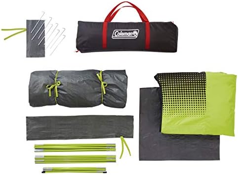 DARK ROOM TECHNOLOGY: Blocks 90% of sunlight (vs. a comparable Coleman tent) so you can sleep in past sunrise REDUCES HEAT: For a more comfortable rest anytime of day WEATHERPROOF: Welded corners and inverted seams keep water from getting in; included rainfly offers extra weather protection; strong frame withstands 35+ mph winds STAY CONNECTED: E-Port makes it easy to bring electrical power inside CONVENTIONAL PITCH: Sets up in 10 minutes DIMENSIONS: 9 x 7 ft. with 4 ft. 11 in. center height; fits 1 queen-size air bed 1-YEAR LIMITED WARRANTY