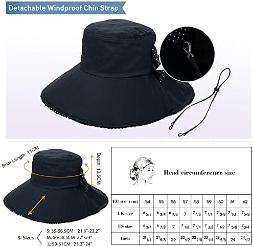SIZE - Small best fits for 55-56.5CM 21.6"-22.2"; Medium best fits for 56-58.5CM 22"-23"; Large best fits for 59-61CM 23.2"-24". DETACHABLE CHIN STRAP: adjustable for a better fit; won't blown off when it gets windy. SPF 50+: this sun hat has passed UPF 50+ test, it could block 97.5% or more of sun UV rays. Great ventilated to keep you cool in summer. WIDE BRIM: measures 4"-4.7" in length, is large enough to shade forehead, neck and cheeks from sun lights. Ponytail Hole - great to pull your bun or ponytail through during summer days. #218,589 in Clothing, Shoes & Jewelry ( ) #592 in