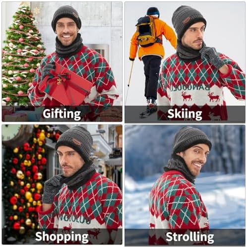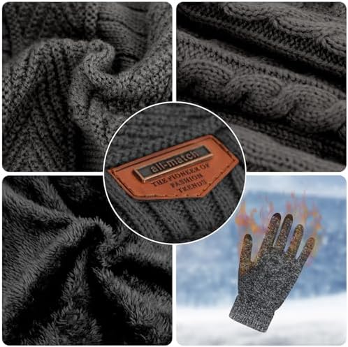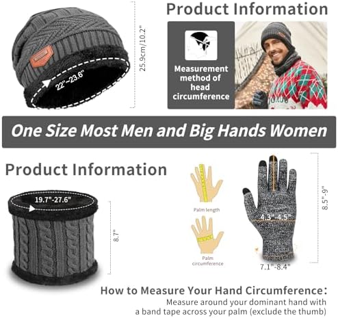 「3 in 1 Hat Scarf and Glove Set」: You will get 1 * Knit Beanie Hat + 1 * Neck Warmer + 1 Pair * Anti-slip Touchscreen Gloves to help you get through the cold winter. 「Touchscreen Gloves」: Three Conductive Fingertips to make sure the sensitive response to the smartphone or tablet screen. Enjoy the cellphone with our warm touch screen gloves on. (ATTENTION: Please make sure you have worn to the top of 3 touch screen fingers to enable the touchscreen capability effective, Otherwise it might be incontinuous.) 「Thick Double Layer」: Stretchy chunky cable knitting yarn with soft fluffy fleece lining layer, keep you warm and cozy in the snow, stop the cold wind in. Versatile for daily casual wear, skiing, snowboarding and other cold weather occasions. 「Classic Never Goes Out Of Style」: Must-have plain winter accessories for your wardrobe to match all kinds of jackets, coats or parka no matter you are a woman or a man. Also a great choice as a sweet gift for Birthday, Christmas or New Year. 「Free Size and Unisex」: Great stretch. One size fits most men women guys ladies teens. Hat Circumference: 22"-23.6", Height: 10.2". Circle Scarf Circumference: 19.7"-27.6", Height: 8.7". Total Length of Gloves: 8.5"-9", Hand Circumference: 7.1"-8.4"         #98,880 in Clothing, Shoes & Jewelry ( )   #137 in