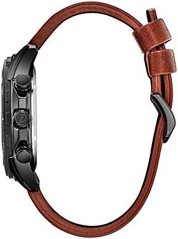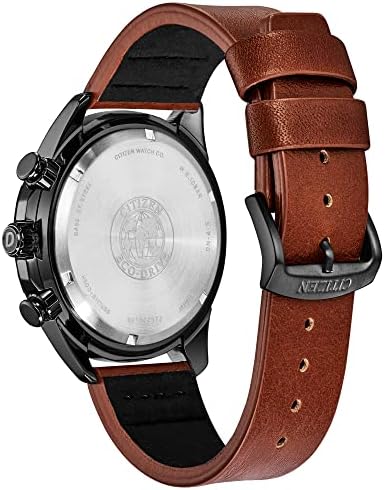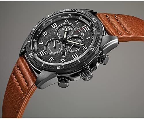 Citizen Men's Eco-Drive Weekender Chronograph Watch in Black IP Stainless Steel with Brown Leather strap, Black Dial (Model: AT2447-01E)