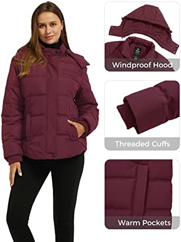Recycled Fabric and Filling - The winter jacket for women is made with renewable fabric and filling, which requires far fewer resources than new fibers and generates fewer CO2 emissions. With a 10,000mm waterproof rating, the women's puffer coat keeps you dry in the rain or warm in snowy weather at all times Against the Wind & Chill - Wear the women's puffer jacket to stay ultra comfy during winter. The warm winter coat for women is padded with a long-lasting shell that ensures outstanding windproof and thermal properties, keeping you stay toasty warm all day long. Our outdoor apparel is suitable for a variety of activities, such as casual wear, outdoor work, travel, cycling, and hiking Protective Thermal Properties - Pull the adjustable hood of the thickened coat up to keep your ears and face warm. The hooded puffer coat's collar, padding, ribbed elastic cuffs, and adjustable drawstring further keep you insulated against the frost Always in Style - The women's winter coat is made available in 11 different modern and stunning colors. Choose from 6 sizes to ensure a custom, comfy, and figure-flattering fit, and show off your classic taste in clothing by sporting the zip-up jacket Never Lose Things in The Snow - Count on the women's coat to help you enjoy the outdoors. It has 4 reinforced pockets for keeping all your essentials, keys, phones, wallet, and small items safe. Enjoy the outdoors with the ladies' puffer jacket that lets you keep everything within reach #21,901 in Climate Pledge Friendly ( ) #61 in #4,249 in