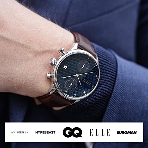 Exquisite Craftsmanship: Elevate your style with our 1815 Chronograph Mens Watches These stainless steel watches for men are meticulously crafted using top-tier components like a 316L High Precision Stainless Steel 41 mm Case and a Miyota 6S11 Quartz Movement Timeless Elegance: Our chronograph watches for men seamlessly blend minimalistic aesthetics with a touch of sophistication The stainless steel watch has a Leather Strap and the Round Sapphire Crystal Glass with Anti-reflective Coating Waterproof Reliability: Our dress watches for men are not just for show it's a versatile companion suitable for rain and showers Tested waterproof for 5 ATM 165 feet or 50 meters you can trust these casual watches for men Elegant Presentation: Every chronograph luxury watch men arrives in our exclusive and stylish wooden box The packing of these mens dress watches not only enhances the gifting experience but also serves as a secure storage solution Peace of Mind Warranty: When you invest in our About Vintage watches men you're investing in quality That's why we offer a generous 2-year warranty on defects giving you confidence in your purchase of quartz watches for men #871,975 in Clothing, Shoes & Jewelry ( ) #5,204 in