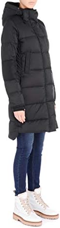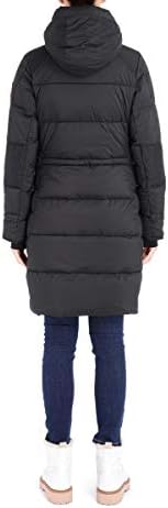 Fabric: Mid-weight, quilted technical weave Fill: 90% down/10% feathers High neckline with adjustable down filled hood , Long sleeves with elastic cuffs and thumbholes, Packs into interior pocket for easy storage, Patch logo at sleeve and reflective stripe at hood, Mid-length profile with interior drawstring at waist Zip closure and snap placket Slant side pockets with snap closure