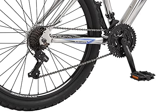 Mongoose Flatrock Hardtail Mountain Bike for Youth Adult Men Women, 21-Speed Twist Shifters, 24 to 29-Inch Wheels, 14.5 to 18-Inch Aluminum Frame Options