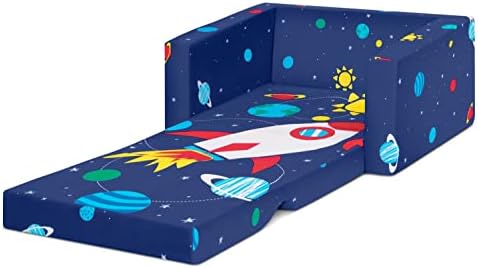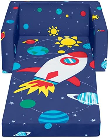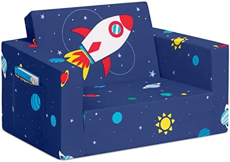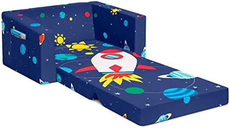 Delta Children Cozee 2-in-1 Convertible Sofa to Lounger - Comfy Flip Open Couch/Sleeper for Kids, Space