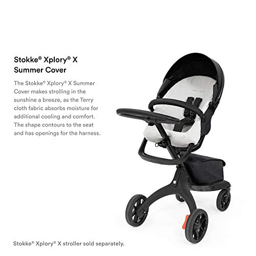 KEEP BABY COOL - The Stokke Xplory X Summer Cover makes strolling in the sunshine a breeze, as the terry cloth fabrics absorb moisture and provide ventilation for additional cooling & comfort. COMFORTABLE - Our terry cloth fabric is gentle against baby’s skin, providing a soft, dry seat, even on those hot summer days. PRACTICAL - This parent-friendly baby seat cover is easy to remove and machine washable. MADE FOR XPLORY X - Specifically designed for the Xplory X stroller, the shape of this cover contours to the seat and has openings for the safety harness. DESIGN WITH A PURPOSE - Stokke entered the children's furniture & accessories sector in 1972, and since then, all our products have been designed to challenge the ordinary, foster healthy development, and nurture family bonding.