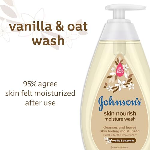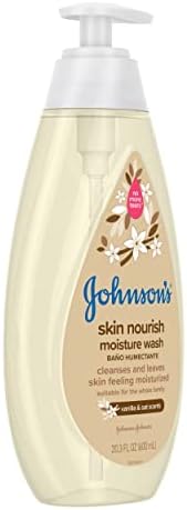 20.3-fluid ounces of Johnson's Skin Nourish Moisture Baby Body Wash enriched with vanilla & oat scents to gently cleanse baby's delicate skin and hair, leaving your little one's skin feeling touchably soft and smooth    Designed to gently cleanse and leave skin feeling moisturized, this baby wash is enriched with 2x more moisturizers* and a gentle vanilla & oat scent. *vs Johnson's Bedtime Wash    Made with a tear-free No More Tears formula, this moisture baby bath wash is as gentle on eyes as pure water, made for baby's delicate skin and hair and suitable for kids and adults too    Hypoallergenic tested with pediatricians and dermatologists, this nourishing baby skin care wash contains no parabens, phthalates, sulfates or dyes    This nourishing baby wash creates a rich lather. To use, wet baby's hair and body with warm water, apply wash with your hand or washcloth, gently lather and rinse           #2,752 in Health & Household ( )   #9 in   #10 in