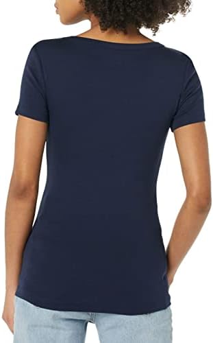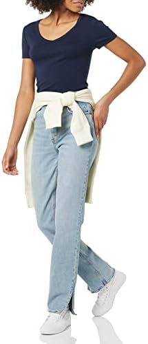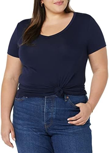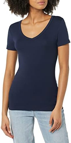 SLIM FIT: Close fit that hugs the body. COTTON MODAL MICRO RIB: Super soft cotton modal micro rib jersey with added stretch offers all-day ease and comfort, while retaining its shape for the perfect slim fit. Fabric you want to live in year round. ESSENTIAL T-SHIRT: This versatile t-shirt is a classic wardrobe essential, perfect layered under your favorite jacket or cardigan or wear on its own styled back to Amazon Essentials Women's Denim and Slip-on Sneakers. DETAILS: Features a classic v-neck and short sleeves for casual and effortless style.         #299 in Our Brands ( )   #35 in