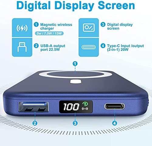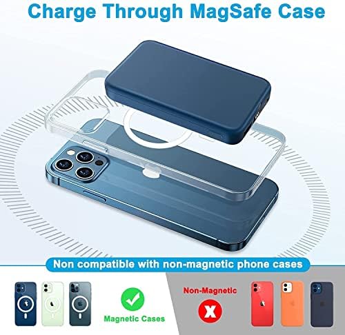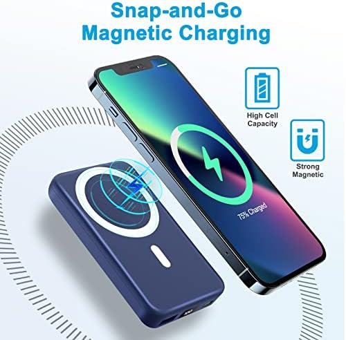 Made for iPhone 15&14&13&12 Series: Mag-Safe Wireless Portable Charger works with iPhone 15, iPhone 15 Pro, iPhone 15 Pro Max, iPhone 15 Plus, iPhone 14, iPhone 14 Pro, iPhone 14 Pro Max, iPhone 13, iPhone 13 mini, iPhone 13 Pro, iPhone 13 Pro Max, iPhone 12, iPhone 12 mini, iPhone 12 Pro, and iPhone 12 Pro Max ( Only compatible with Mag-Safe-certified phone cases or without cases ).    Fast Charging & 10000mAh Large Capacity: Wireless Magnetic Battery Pack Built-in 8 low-temperature ice high-quality power core and phone magnetic patch for double strong mag-suction which Can hold your phone tightly and offer wireless charge 5W/7.5W/10W/15W devices and 22.5W USB-C output charge. The magnetic power bank can charge 3 devices at the same time. The Power Bank real 10000mAh supports 2 charges of iPhone 13&12    0.4lb Lightweight Design for Portability: Magbank wireless charger weights 0.4lb,the ultra-light design allows you to charge at any time and anywhere without any weight, which is perfect for put it in your pocket.The built-in baby-like silicone material is to better protect your phone from scratches during wireless charging    Superior Safety:Our wireless phone charger and magSafe bank charger with high quality chips supply safety protection of magnetic power bank includes overcharge protection, short circuit protection, reset protection, high temperature protection, etc    What You Get: 10000mAh magnetic wireless power bank, USB-C cable. If any problem, feel free to contact us. We promise to solve your problem within 24 hours