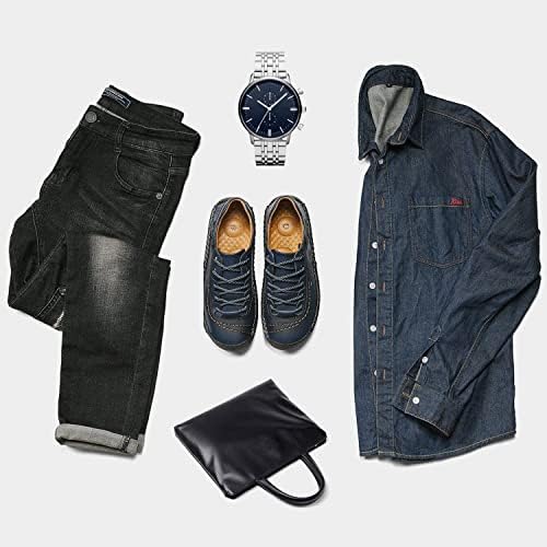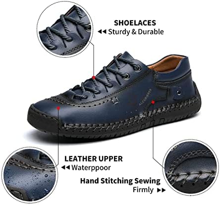 ?【UPPER & EXQUISITE WORKMANSHIP】- Our upgraded casual shoes are made of genuine leather on all surfaces for sturdy and durable wear. Purely hand stitch are firm and not easy to break, metal buckles on the sides and heel add a retro-casual look. Adjustable lace-up closures assure a personal fit and reinforced with 2 rows of metal, making it won't fall apart ?【COMFORTABLE ARCH SUPPORT INSOLE】 - Our soft latex memory foam men's shoes insert is carefully designed to provide optimal cushioning and support, and can reduce plantar fasciitis, you no longer need to endure the pain of hard TPU support pads. They are also breathable, sweatproof and odorless, making your feet the long-lasting comfy ?【ANTI SLIP RUBBER SOLE】 - The 100 % nature rubber and thickness increased outsole of shoes for men can provide powerful grip, anti slip and abrasion resistance performance to you. No longer bothered by foot pain, rigid steps and other uncomfortable problems, reducing the risk of slip down, making you can work safer and enjoy your daily life ?【VERSATILE USE MENS CASUAL SHOES】 – This men's loafers & slip-ons can be perfectly matched in a variety of ways to jeans, casual pants, sweatpants, shorts, and other outfits for all daily needs and good for using any occasions(outdoor and indoor), like work, driving, traveling, walking, fishing, sports, or other casual lifestyles. Would be a great option for your family and friends on birthday, anniversary, Christmas, etc. They will be amazed by this gift ?【NOTE & CUSTOMER SERVICE】 - If you are not sure about the size, measure the heel and refer to the following size recommendations before purchase our low top shoes for men. We always focus on product quality and value the shopping experience of our customers highly. Every product purchased from us comes with a 24/7 friendly customer service. Whenever you have a question, please feel free to contact us #51,606 in Clothing, Shoes & Jewelry ( ) #205 in