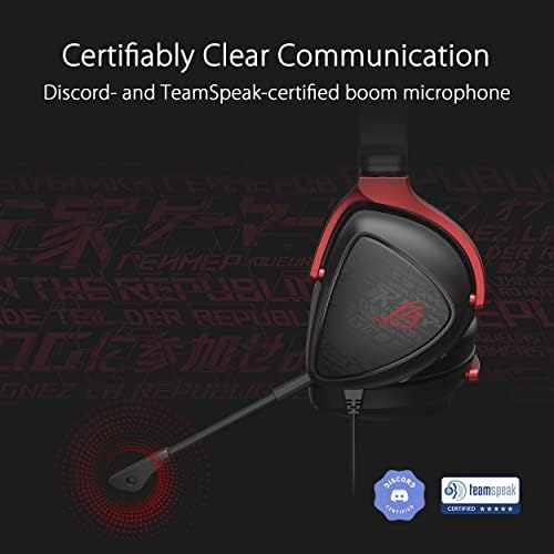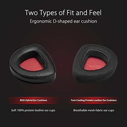 1. Exclusive 50 mm ASUS Essence drivers and airtight chamber technology for immersive sound 2. Virtual 7.1 surround sound supported by Windows Sonic 3. Discord- and TeamSpeak-certified boom microphone for clear in-game voice communication 4. Lightweight 270-gram design with ergonomic D-shaped ear cushions for long-lasting comfort 5. 3.5 mm connector for compatibility with PCs, Macs, PlayStation, Nintendo Switch, Xbox and mobile devices