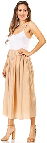 STYLE - Featuring a high waisted fit, chic pleated style and 2 side pockets, the black midi skirt is the ideal piece your closet needs. The elastic waistband gives great stretch, and the in seam side pockets are great for carrying small items. The aline style falls to an elegant hem that hits at midcalf length. OCCASION - The high waisted skirts for women are suitable for parties, holidays, cocktails, everyday casual, beach, wedding, dates, club nights, and the office. Pairs awesomely with a belt for a chic touch. These trendy skirts can be worn as maternity skirts too! TRANSITIONAL - Great for year round wear; pair with a cami and sandals for a summer feel, and layer it up for winter with pullovers and boots. The black skirt makes a great transitional piece for spring and autumn. COLOR OPTIONS & LENGTH - This boho inspired womens skirt is available in solid colors as well as prints and polka dots. It will hit between midi to maxi, depending on height and size purchased. Regular and plus size skirt options available. CARE INSTRUCTIONS - Machine wash cold, hang to dry. We recommend using fabric softener, it can effectively reduce static electricity. #10,515 in Clothing, Shoes & Jewelry ( ) #28 in