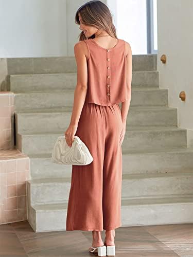 Size - Choose the perfect fit from S=US(2-4), M=US(6-8), L=US(10-12), XL=US(14-16),XXL=US(18-20). For detailed size information, check our rich description Features - This 2 piece outfit features a sleeveless round neck crop top, wide-leg cropped pants, button back, high waist, and a wide waistband for added comfort. Occasion - From summer parties to casual tourism, this trendy two-piece outfit is perfect for every occasion. Make it a must-have for your daily wear, weekend family parties, and vacations. Stylish Outfit Set - Embrace effortless style with this set that combines perfect length and high-quality lightweight fabrics for a comfortable experience all day long. With a cozy elastic waist, it's perfect for any occasion, from everyday wear to lounging or even beach vacations and workouts! Washing - Dry clean recommended to avoid shrunk.