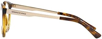 FRAME FEATURES: AX3104 eyeglass frames feature a cat eye, shiny Havana frame with contrasting metal temples. The bio-based nylon fiber frame is made with parts of monomers generated by renewable sources. PRESCRIPTION READY EYEGLASS FRAMES: Armani Exchange eyeglass frames feature lenses that need to be replaced with prescription lenses so you can enjoy clear vision. CASE & CLEANING CLOTH INCLUDED: Each pair of Armani Exchange eyeglass frames come with a cleaning cloth and case to clean and protect your eyewear from scratches and damage. VISIT THE ARMANI EXCHANGE BRAND SHOP: Click on the Armani Exchange link above the product title to shop the entire Armani Exchange sunglass and eyeglass assortment.         #2,064,949 in Clothing, Shoes & Jewelry ( )   #1,881 in