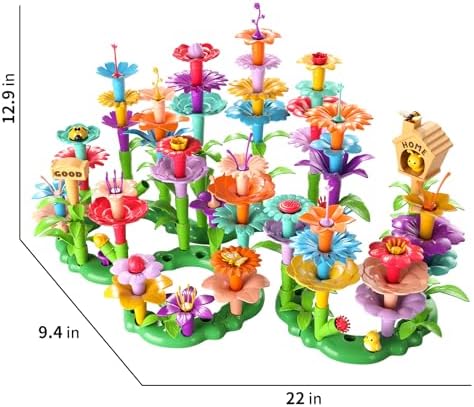 Garbo Star 148PCS Flower Garden Building Toys for 3 4 5 6 Year Old Girls, Educational Activity Preschool Birthday Gifts for 3 4 5 Year Old Girls, Building Stem Toys for Kids Toddlers Ages 3-5