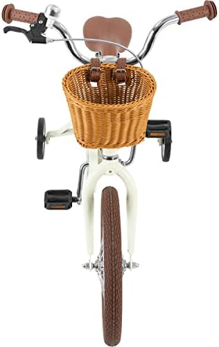 LOW-PROFILE FRAME: Beaumont kids bike is 16 inches and fitted with an easy-to-mount frame that's perfect for little legs learning to hop on and off a bicycle.    SAFE BRAKING: This kids bike features a coaster brake and handbrake for multiple ways to stop.    TRAINING WHEELS: Beaumont Mini's steel training wheels ensure your little tot will stay safe and they cruise.    INSTA-WORTHY: We added an adorable woven kids bike basket and bike bell for functionality and personality. Basket weight limit: 5lbs.
