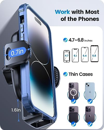 OQTIQ Anti-UV Film & Tap Button Design Windshield/Dashboard/Vent 3-in-1 Suction Cup Phone Mount Compatible with All Cellphones(4.7-6.8")- H6S 2023 Style
