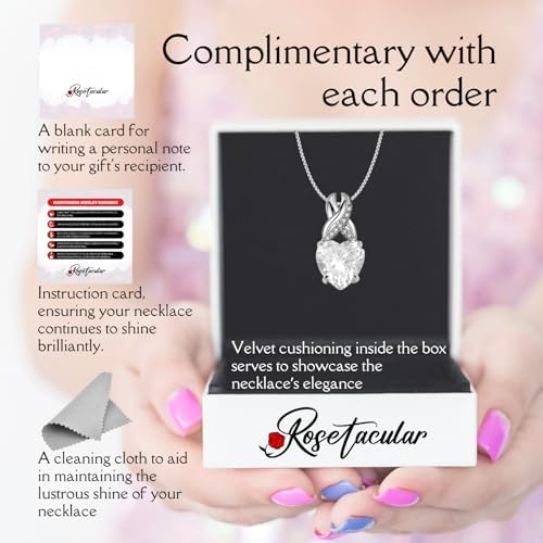 EXQUISITE BIRTHSTONE NECKLACE FOR WOMEN: Our Rosetacular Birthstone Heart Necklace featuring a stunning heart birthstone pendant that symbolizes love and connection. 12 birthstone colors. A special gift for women, mother, daughter, or girlfriend. Ideal gift for Birthday, Mother’s Day, Valentine’s Day and Christmas. PREMIUM QUALITY DIAMOND LIKE: Crafted from high-quality platinum-plated sterling silver, 5A cubic zirconia heart. This necklace ensures durability and a brilliant shine, highlighting the intricate infinity heart design that adds a touch of elegance to any outfit. 20” + 2” extender, box chain with lobster clasp. THOUGHTFUL GIFT FOR HER: Celebrate birthdays, anniversaries, or special moments with this unique birthstone jewelry. It’s an ideal gift for moms, girlfriends, or any cherished woman in your life, beautifully packaged and ready to surprise. ELEGANTLY PACKAGED FOR GIFTING: Each necklace arrives ready for gifting, displayed on plush velvet padding inside a luxurious box, accompanied by a blank card for your personal message, cleaning instructions to preserve its sparkle, and a soft cleaning cloth. It’s the ideal, thoughtful package, perfect for gifting straight away. PREMIUM CUSTOMER SERVICE: Our 90-Day Satisfaction Guarantee ensures a full refund or free replacement on any purchase of our birthstone necklaces if you encounter defects or damages not caused by artificial damage. Please contact our responsive customer service team within this period for prompt assistance and to initiate a hassle-free return or exchange. We are committed to ensuring your complete satisfaction with your cherished purchase. #1,272,733 in Clothing, Shoes & Jewelry ( ) #17,812 in