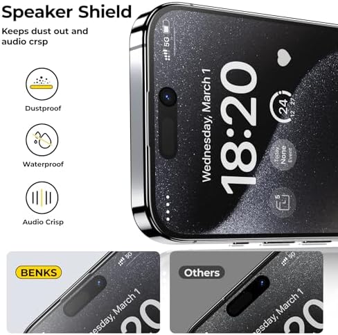?【Anti Galre Tech】:BENKS iPhone 15 pro max screen protector with a premium anti-glare matte finish that reduces harsh light reflections off your screen, making your phone easier to use under direct sunlight, or in brightly lit rooms, and is highly resistant to oil smudges and fingerprint marks. According to a survey, an average of more than eight hours per person per day is spent using a smartphone. To protect the eyes, anti galre matte films must be used! ?【Only 0.23mm, As your iPhone's 2nd Screen】The 0.23mm iphone 15 pro max matte screen protector glass is ultra-thin, just like without the protector, feels very smooth. And it is made of high-quality 9H tempered glass, with a 1:1 reinforced black border surrounding the most vulnerable screen edges, providing comprehensive protection for your new iPhone. Also, it is visually invisible as it blends perfectly with the iPhone screen. ?【High Definition & Face ID Recognition】BENKS New generation Matte screen protector provide our users with premium clarity and highly sensitive touch response. We use Nano technology to ensure that there is no graininess on the screen. Therefore, it will not blur the front camera and does not interfere with any functions. Your Face ID will work as well as normally as without a film. ?【Smooth Feel & Easy to Apply】The surface of this tempered glass film is micro matte finished and treated with an oleophobic coating, which provides you with the super smooth touch feeling and sensitive respond, while keeps your screen free of fingerprints, water and oily smudges. Also, Alignment frame and cleaning kit take the guesswork out of application to ensure it’s quick, easy, and bubble free ❤【What You Get】2x Matte Glass screen protector, 1x Auxiliary Cleaning Kit, 1x Easy Install Tool and friendly customer service. If you have any problems with the product, please contact us via Amazon. We will respond within 24 hours and provide a satisfactory after-sales experience. Note: This Matte glass screen protectr is specifically designed for iPhone 15 Pro Max 6.7inch 2023, ✳Not for any other models.